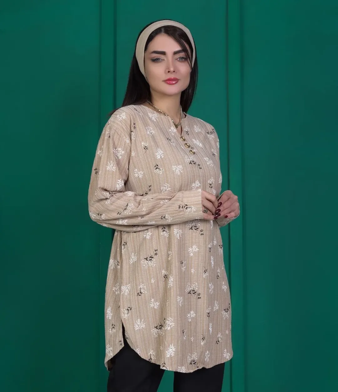 تونیک زنانه گل یاس پارچه کراش کد ۱۴۶۳