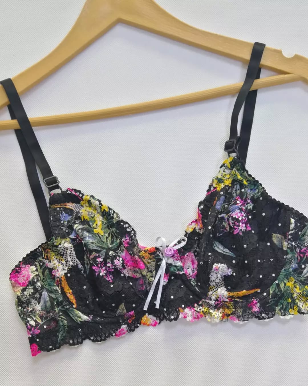 سوتین جلو بازشو پشت طرح دار فنردار برند همسان کد ۶۰۲۳