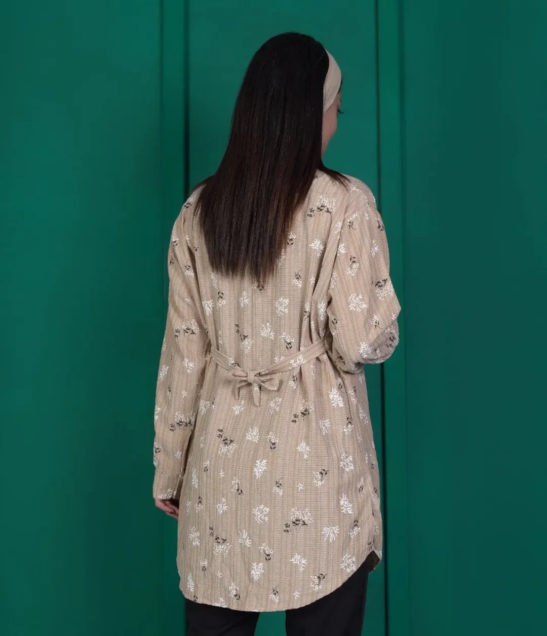 تونیک زنانه با پارچه کراش و چاپ گچی، مناسب برای سایز تا ۴۶.