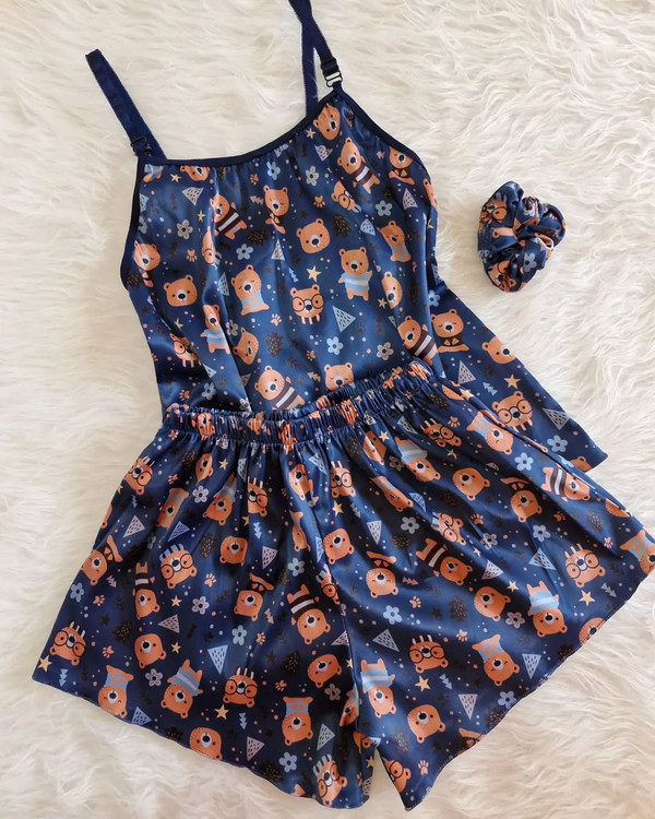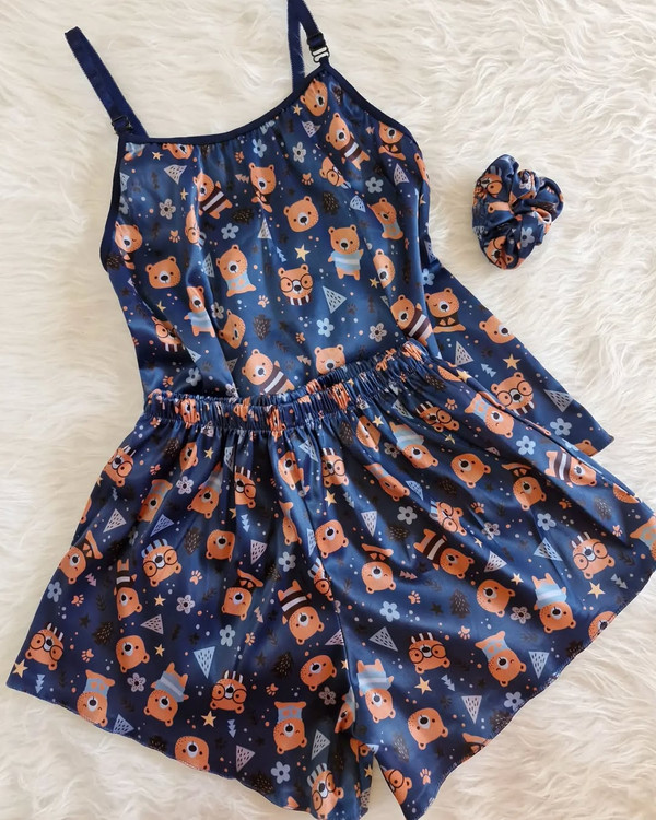 ست تاپ و شورتک ساتن با اسکرانچی بلندی تاپ(بند رکابی قابل تنظیم) ۵۲ دور سینه با نهایت کش ۵۰ بلندی شورتک ۳۳ کمر با نهایت کش ۵۹ مناسب ۳۲،۳۴،۳۶