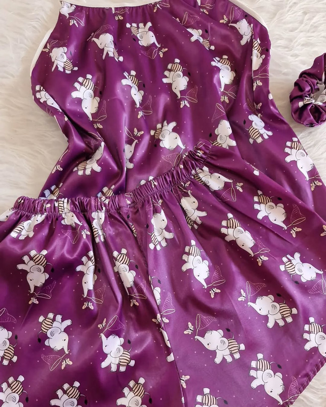 ست تاپ و شورتک ساتن با اسکرانچی بلندی تاپ(بند رکابی قابل تنظیم) ۵۲ دور سینه با نهایت کش ۵۰ بلندی شورتک ۳۳ کمر با نهایت کش ۵۹ مناسب ۴۰ تک رنگ بنفش