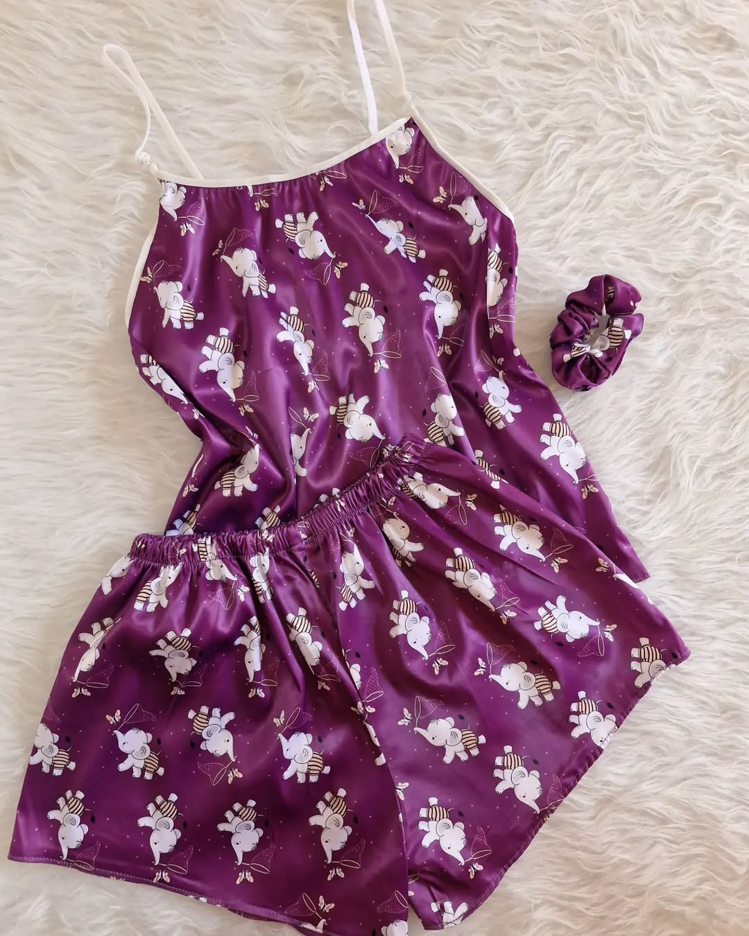 ست تاپ و شورتک ساتن با اسکرانچی بلندی تاپ(بند رکابی قابل تنظیم) ۵۲ دور سینه با نهایت کش ۵۰ بلندی شورتک ۳۳ کمر با نهایت کش ۵۹ مناسب ۴۰ تک رنگ بنفش