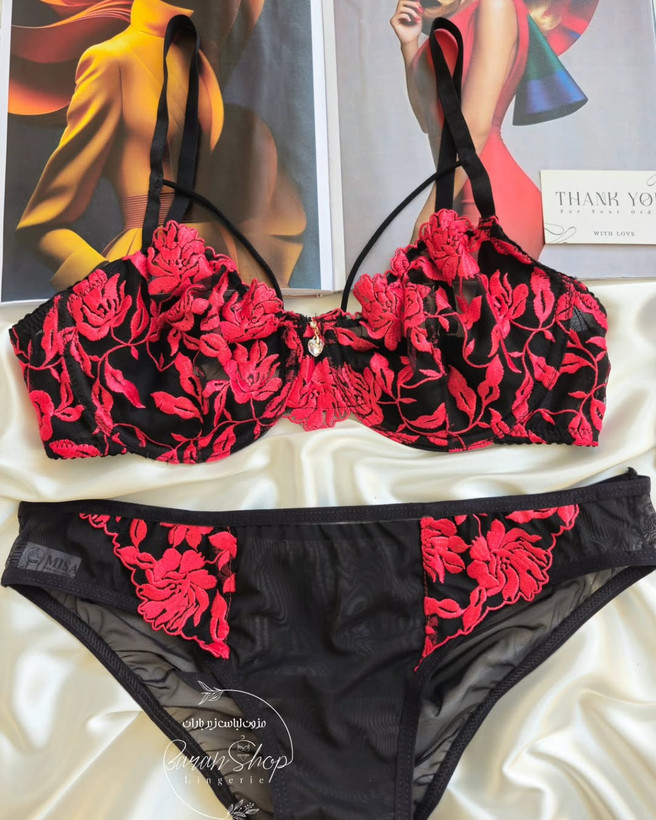دیدن محصولات مرتبطست جذاب و دلبر با طراحی قرمز و مشکی، شامل سوتین با لیفت دهنده و شورت جلو باز، مناسب سایزهای سوتین ۷۵، ۸۰، ۸۵، ۹۰ و دارای رنگبندی.