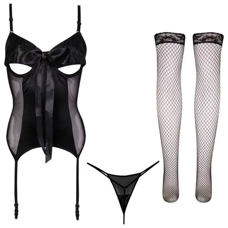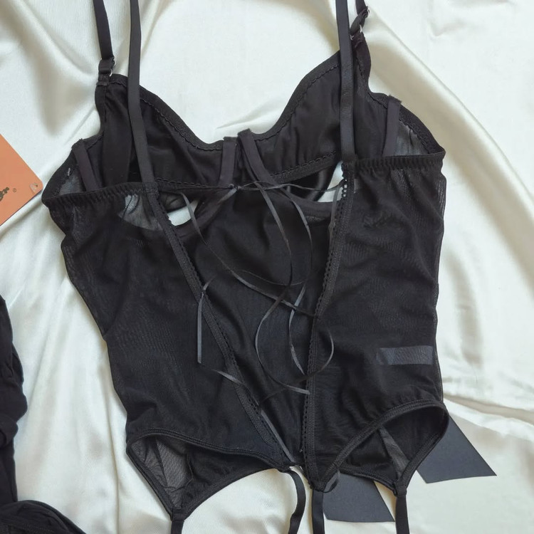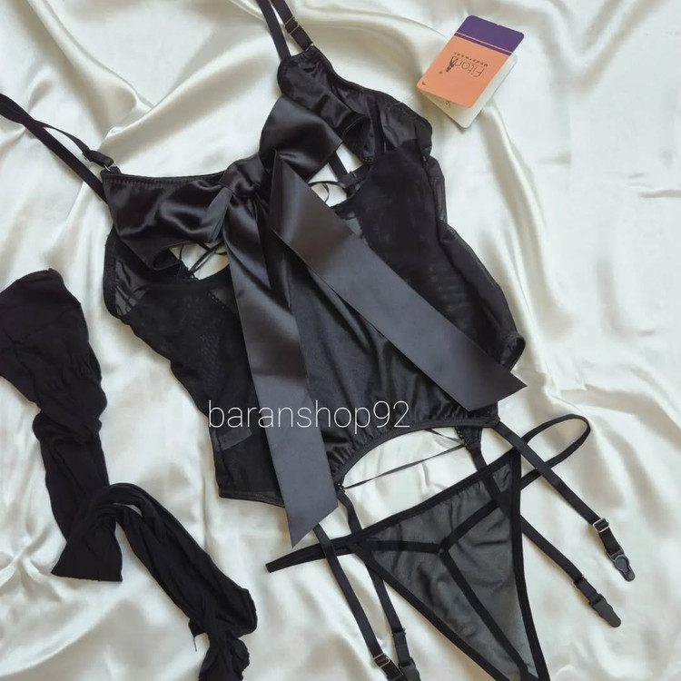 این بادی شامل جوراب، پیراهن زیرسینه فنردار است که قسمت سینه یه مقدار بازه و بدنماست. بند جوراب متصل دارد و پشت کار کاملا بندکیه و راحت میتونید تنظیم سایز کنید و یه استایل س.ک.س و فوق العاده بهتون میده.