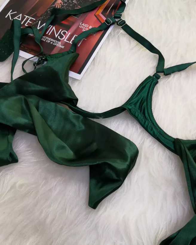 مناسب همه سایزها با قسمت کاپ سینه رگلاژی و قابل تنظیم، دو گارتر دور ران، سه رنگ مشکی، قرمز و سبز.