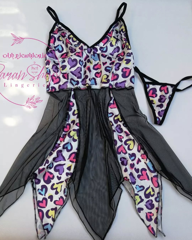 لباس خواب ترکیبی ساتن و گیپور گوگولی تک سایز