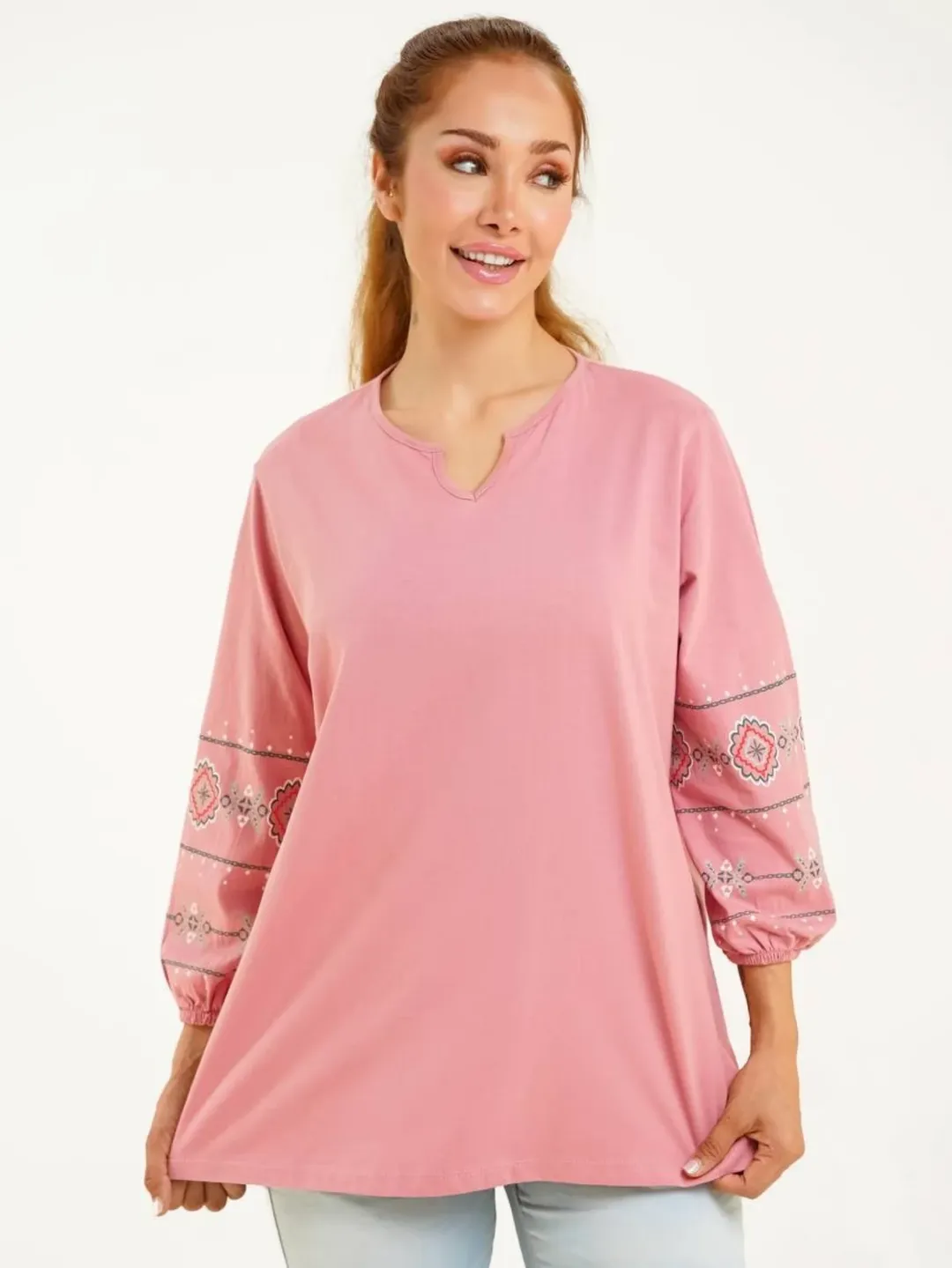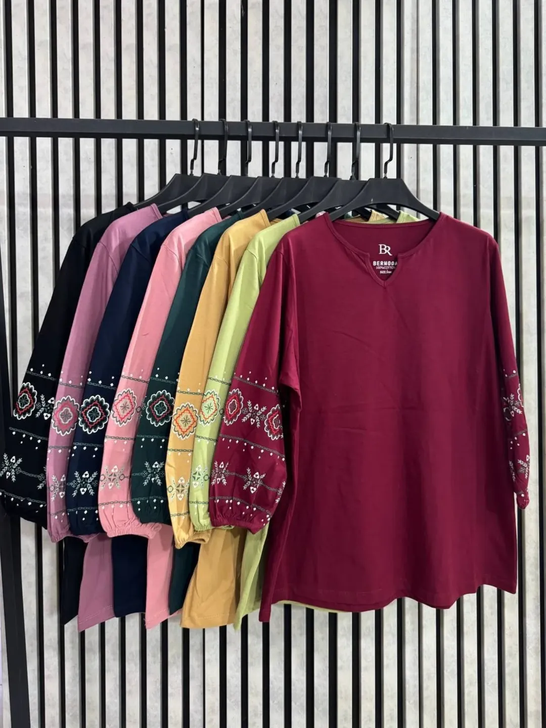 بلوز آستین سه ربع یقه کوبایی با پارچه پنبه با کیفیت فوق العاده. عرض سینه: ۶۲ سانتی متر، قد کار: ۶۸ سانتی متر، مناسب تا سایز ۴۸ و ۴۶.