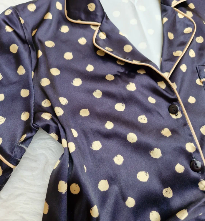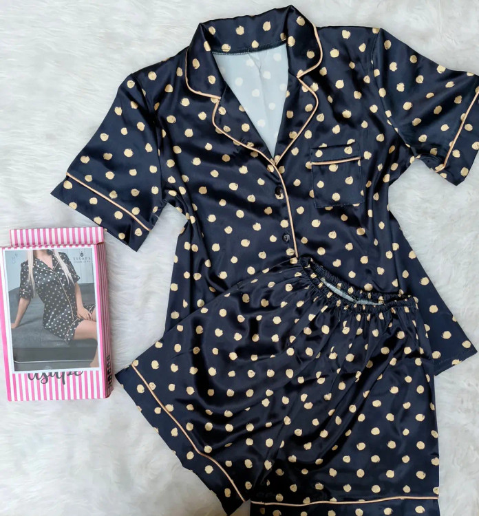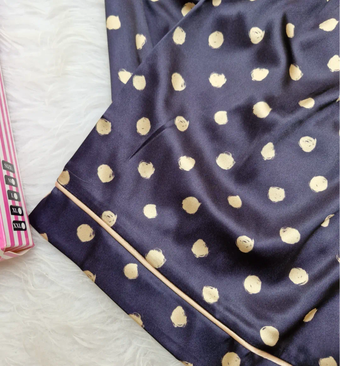 این ست شامل یک بلوز جلو دکمه و یک شورتک ساتن با مغزی دوزی است. مناسب برای سایزهای ۳۶ تا ۴۲ برای لارج و ۴۴ تا ۴۶ برای ایکس لارج.