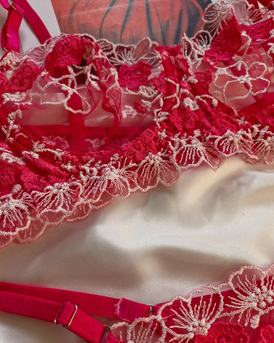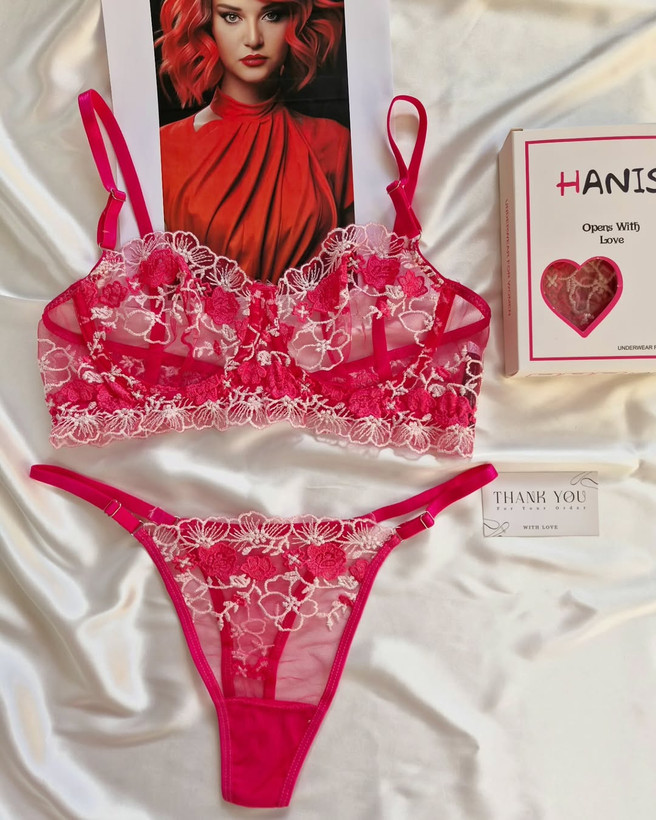 یه ست با زمینه رنگی صورتی پررنگ که زمینه گلی برجسته داره این ست با ترکیب رنگی جذابش که سفید و صورتی رو ترکیب کرده فوق العاده شده.